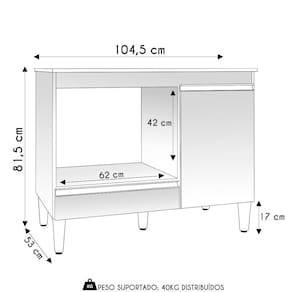 Espaço para Microondas: 62 x 42 cm.