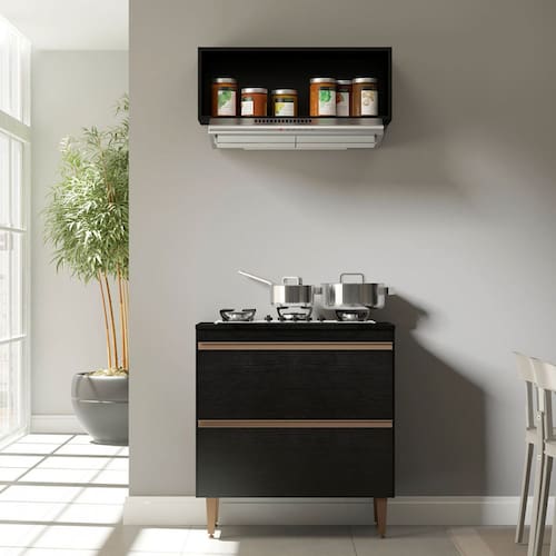 Características: Produzida em MDP de 15 mm Acabamento UV Texturizado Gavetas com Corrediça Telescópica Puxadores Perfil em ABS Pés Regulares em ABS Balcão para Cooktop possui Tampo com Ranhura que pode ser utilizado com cooktop de 5 bocas, caso não cortar pode utilizar normalmente.