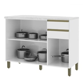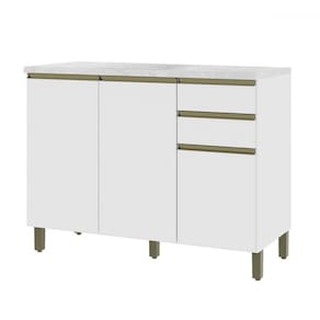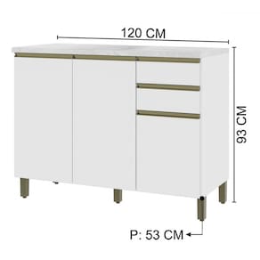 O(a) Balcão de Cozinha para Pia 120 Cm 3 Portas 2 Gavetas Branco 6123.17 - Indékes  é produzido em MDP na escala de brilho Fosco, e possui um grau de dificuldade de montagem: Médio.