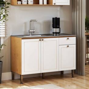 O(a) Balcão de Cozinha para Pia 120 Cm Essência Frizz 3 Portas 1 Gaveta 100% Mdf Cinamomo/Branco Fosco - Geniaflex é produzido em MDF na escala de brilho Fosco, e possui um grau de dificuldade de montagem: Médio.