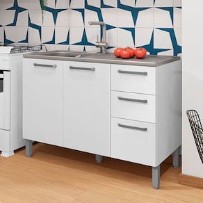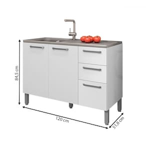 O(a) Balcão de Cozinha para Pia 120 Cm Mad Versalhes 3 Portas 2 Gavetas Branco/Supremo - Kits Paraná é produzido em MDP na escala de brilho Semi-Fosco, e possui um grau de dificuldade de montagem: Médio.