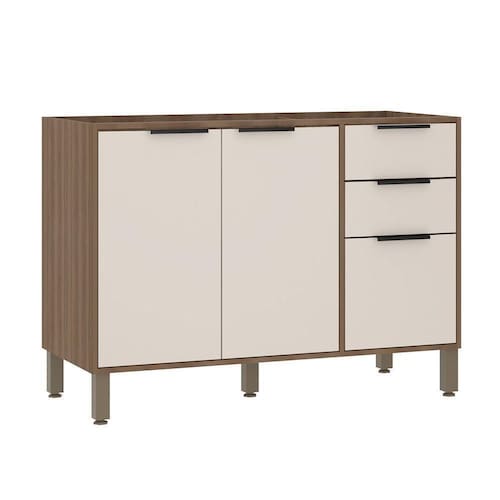 Balcão De Cozinha Para Pia 120cm 2 Portas E 3 Gavetas Sem Tampo Aspen Luciane Móveis Vanilla/beige Desenvolvida com materiais de excelencia, a Cozinha Aspen oferece excelente distribuicao de espaco interno para sua organizacao. E fabricada em 100 MDP e possui acabamento das portas em BP oferecendo durabilidade, resistencia a riscos e facil manutencao. Conta com puxadores tipo Alca em Aluminio Preto dando um toque especial de classe e sofisticacao ao ambiente. Balcao de Cozinha para Pia 120cm 2 Portas e 3 Gavetas sem Tampo Aspen Luciane Moveis