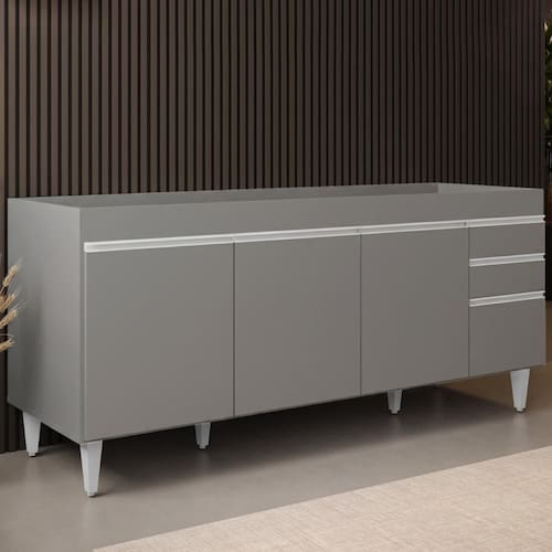Balcão de Cozinha Para Pia 180cm Sem Tampo Dallas Cinza - Lumil