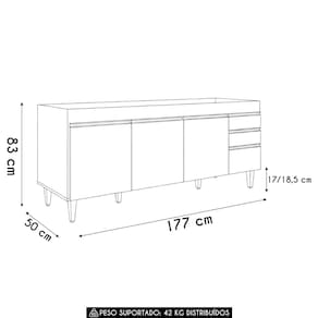 Dimensões do Produto Largura: 177 cm. Altura: 83 cm. Profundidade: 50 cm. Peso: 42 Kg.
