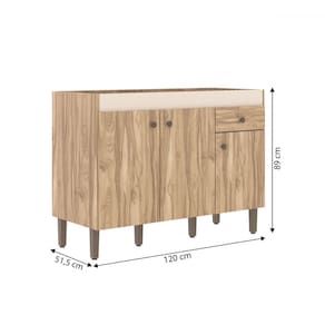 O(a) Balcão de Cozinha para Pia 3 Portas 1 Gaveta Carvalho Oak/Cristalo - Decibal é produzido em MDP na escala de brilho Semi-Brilho, e possui um grau de dificuldade de montagem: Médio.
