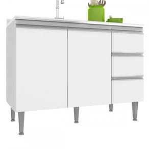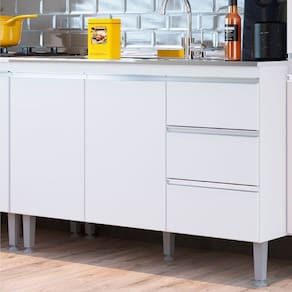 Balcão de Cozinha para Pia Athena 2 Portas 3 Gavetas Branco - Irm Móveis