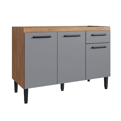 O(a) Balcão de Cozinha para Pia Giovanna 3 Portas 1 Gaveta Freijó/Cinza - Irm Móveis é produzido em MDP na escala de brilho Fosco, e possui um grau de dificuldade de montagem: Médio.