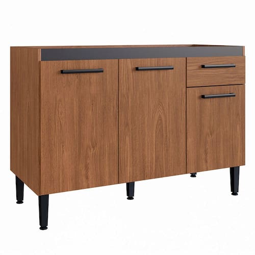 O(a) Balcão de Cozinha para Pia Giovanna 3 Portas 1 Gaveta Freijó/Preto - Irm Móveis é produzido em MDP na escala de brilho Fosco, e possui um grau de dificuldade de montagem: Médio.