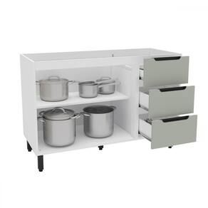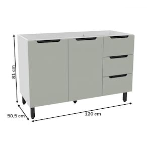O(a) Balcão de Cozinha para Pia Meena 2 Portas 3 Gavetas Branco/Verde - Politorno  é produzido em MDP na escala de brilho Semi-Fosco, e possui um grau de dificuldade de montagem: Médio.