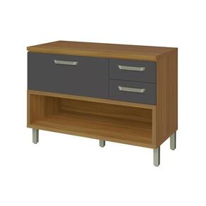 Balcão de Cozinha Princesa 1 Porta e 2 Gavetas c/ Tampo 120cm Freijo/Grafite - Nesher