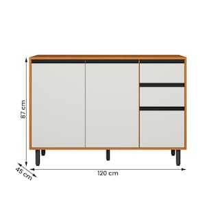 Com amplo espaço interno, 3 portas e 2 gavetas com corrediças telescópicas, ele garante praticidade e organização no dia a dia.