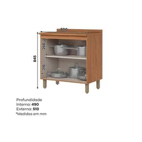Balcão de Cozinha Requinte c/ 2 Portas s/Tampo 80cm Nature/Areia - Henn