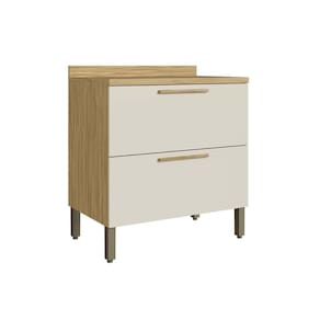 Balcão de Cozinha Riesling c/ 1 Porta e 1 Gaveta c/ Tampo 80cm Amendoa/Off White - Ronipa