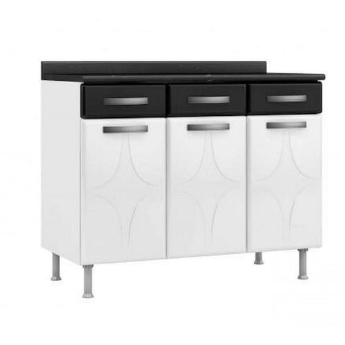 Balcão De Cozinha Rubi 3 Gavetas Com Tampo Telasul Preto