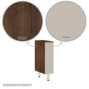Características Corpo/Caixaria: MDP - Nogueira Dourado - FF. Frontais: MDP - Acabamentos em BP. Dobradiças: Ø35mm Slow motion. Puxadores: Alumínio Gola - Inox. Pés: P S - Cromado Portas: 1 Prateleiras: 1 Montagem com Minifix, Parafusos e cavilhas. Itens incluso: manual de montagem, ferragens e acessórios para montagem.