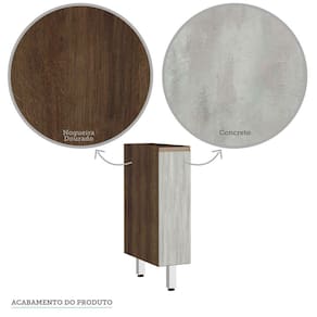 Características Corpo/Caixaria: MDP - Nogueira Dourado - FF. Frontais: MDP - Acabamentos em BP. Dobradiças: Ø35mm Slow motion. Puxadores: Alumínio Gola - Inox. Pés: P S - Cromado Portas: 1 Prateleiras: 1 Montagem com Minifix, Parafusos e cavilhas. Itens incluso: manual de montagem, ferragens e acessórios para montagem.