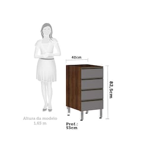 Balcão de Cozinha sem Tampo 40cm 4 Gavetas Jade Luciane Móveis - Cinza