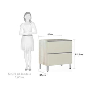 Balcão de Cozinha sem Tampo 80cm Misto 1 Porta Basculante e 1 Gavetão Lis Luciane Móveis - Bege Claro