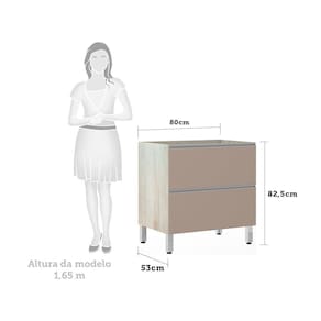 Balcão de Cozinha sem Tampo 80cm Misto 1 Porta Basculante e 1 Gavetão Lis Luciane Móveis - Blush