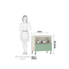 Balcão de Cozinha sem Tampo 80cm Misto 1 Porta Basculante e 1 Gavetão Luci Luciane Móveis - Verde Cinza