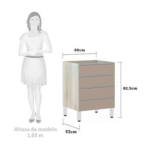 Balcão de Cozinha sem Tampo Gaveteiro 60cm 4 Gavetas Lis Luciane Móveis - Bege