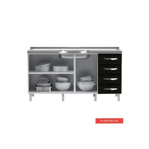 Balcão de Cozinha Star New 3 Portas e 4 Gavetas s/ Tampo 120cm Branco/Preto - Telasul