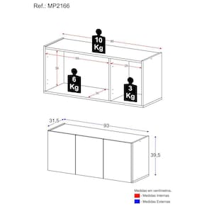 Dimensões do produto montado: Altura: 39,5cm | Largura: 93cm | Profundidade: 31,5cm *Você pode consultar as medidas detalhadas na imagem técnica do produto.