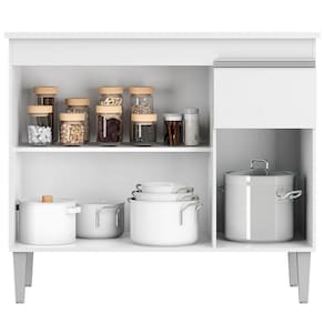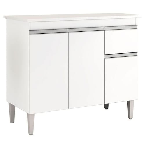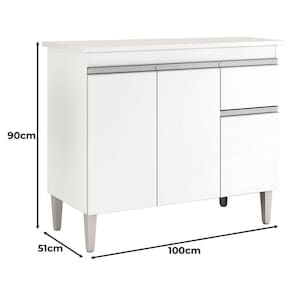 Balcão de Cozinha Tatiane com Tampo 100cm Branco Brilho - AJL