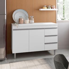 O Balcão possui um perfeito design moderno, compartimento com amplo espaço interno para acomodar utensílios, panelas, eletrodomésticos pequenos e muito mais.
