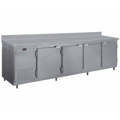 Balcão De Encosto 4 Portas 860 Litros Rf046 Frilux Balcão Refrigerado Inox 110v Balcão de Encosto 4 Portas 860 Litros RF046 Inox Frilux. Conservação e refrigeração de bebidas, frios e alimentos em geral. Controlador digital. Revestimento externo inox. Revestimento interno galvanizado. Refrigeração por ar forçado. Aquecimento no quadro das portas. Pés reguláveis. CAPACIDADE: 860 litros. CONSUMO: 304kWh/mês. TEMPERATURA: +2 à +7. PESO: 175Kg. DIMENSÕES EXTERNAS(CxAxL): 290x100x66cm. Toda nossa linha de produtos estão certificados e atendem a portaria 371 do INMETRO referente a certificação de segurança. Balcão de Encosto 4 Portas 860 Litros RF046 Inox Frilux é na Atau. Marca - Frilux Modelo - RF046 Capacidade - 860 litros Portas - 4 portas Altura - 1,00m Temperatura - +2 à +7C Profundidade - 66cm Frente - 2,90m Peso - 175Kg Consumo - 304 kwh/mês
