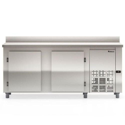Balcão De Encosto Com 2 Portas Sem Pia Gbfe200 Gelopar Balcão 556 Litros Inox 110v Balcão de Encosto 2 Portas 556 Litros GBFE200AI Gelopar. Conservador e Expositor de frios, laticínios, bebidas e alimentos diversos não congelados. Ideal para cozinhas industriais de hotéis, restaurantes, clubes, bares, lanchonetes, confeitarias, mercados, mercearias e outros. Temperatura: 0 a +7C. Refrigeração: Ar forçado com evaporador aletado. Controlador eletrônico com indicador de temperatura. Degelo automático (frost free). Portas: Cegas. Prateleiras: 1 nível aramadas e regulável. Resistência no quadro de portas. Revestimento interno em aço galvanizado. Revestimento externo do tampo em aço inox 304 escovado, gabinete em aço inox 430 e traseira e fundo em aço galvanizado. Tampo liso, sem rebaixo. Pés niveladores. Motor do lado direito, para quem está de frente para as portas. Compatível com cuba GN e caixa euronorm. ATENÇÃO: não acompanha cubas. CAPACIDADE: 556L. TEMPERATURA: 0 a +7C. CONSUMO: 5,6 kWh/dia. PESO: 99kg. DIMENSÕES EXTERNAS (CxAxL): 200x100/90x70cm. Equipamento certificado conforme Portaria Inmetro n 371/2009. Balcão de Encosto 2 Portas 556 Litros GBFE200AI Gelopar é na Atau. Marca - Gelopar Modelo - GBFE200AI Capacidade - 556 Litros Portas - 2 Altura - 100cm Temperatura - 0 a +7C Profundidade - 70cm Frente - 200cm Peso - 99kg Consumo - 5,6 kWh/dia