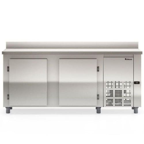 Balcão De Encosto Com 2 Portas Sem Pia Gbfe200 Gelopar Balcão 556 Litros Inox 220v Balcão de Encosto 2 Portas 556 Litros GBFE200AI Gelopar. Conservador e Expositor de frios, laticínios, bebidas e alimentos diversos não congelados. Ideal para cozinhas industriais de hotéis, restaurantes, clubes, bares, lanchonetes, confeitarias, mercados, mercearias e outros. Temperatura: 0 a +7C. Refrigeração: Ar forçado com evaporador aletado. Controlador eletrônico com indicador de temperatura. Degelo automático (frost free). Portas: Cegas. Prateleiras: 1 nível aramadas e regulável. Resistência no quadro de portas. Revestimento interno em aço galvanizado. Revestimento externo do tampo em aço inox 304 escovado, gabinete em aço inox 430 e traseira e fundo em aço galvanizado. Tampo liso, sem rebaixo. Pés niveladores. Motor do lado direito, para quem está de frente para as portas. Compatível com cuba GN e caixa euronorm. ATENÇÃO: não acompanha cubas. CAPACIDADE: 556L. TEMPERATURA: 0 a +7C. CONSUMO: 5,6 kWh/dia. PESO: 99kg. DIMENSÕES EXTERNAS (CxAxL): 200x100/90x70cm. Equipamento certificado conforme Portaria Inmetro n 371/2009. Balcão de Encosto 2 Portas 556 Litros GBFE200AI Gelopar é na Atau. Marca - Gelopar Modelo - GBFE200AI Capacidade - 556 Litros Portas - 2 Altura - 100cm Temperatura - 0 a +7C Profundidade - 70cm Frente - 200cm Peso - 99kg Consumo - 5,6 kWh/dia