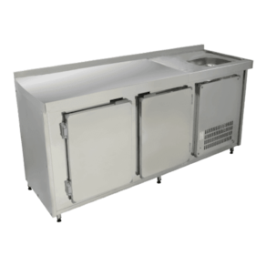 O Balcão de Encosto Com Pia 1,60m Inox Polofrio 4101 127v é um apoio indispensável em cozinhas de hotéis, restaurantes, bares, clubes, lanchonetes, mercados, mercearias e outros estabelecimentos que necessitem de refrigeração a temperaturas de 1º a +7 ºC para alimentos não congelados, como frios, laticínios, bebidas e outros, a refrigeração é estática, com 1 placa fria no teto, possui isolamento térmico em poliuretano injetado e acabamento em aço inox 430.