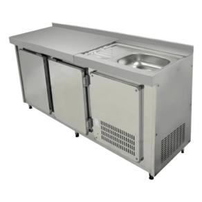 O Balcão de Encosto Com Pia 2,00m Inox Polofrio 4103 220v é um apoio indispensável em cozinhas de hotéis, restaurantes, bares, clubes, lanchonetes, mercados, mercearias e outros estabelecimentos que necessitem de refrigeração a temperaturas de 1º a +7 ºC para alimentos não congelados, como frios, laticínios, bebidas e outros, a refrigeração é estática, com 1 placa fria no teto, possui isolamento térmico em poliuretano injetado e acabamento em aço inox 430.