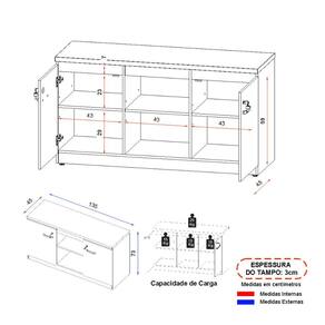 Dimensões do Produto Montado: Altura: 73cm | Largura: 135cm | Profundidade: 45cm *Você pode consultar as medidas detalhadas na imagem técnica do produto.