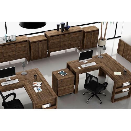 Balcão de Escritório ME4149 c/ 2 Portas c/ Chave Amêndoa/Preto - Tecno Mobili