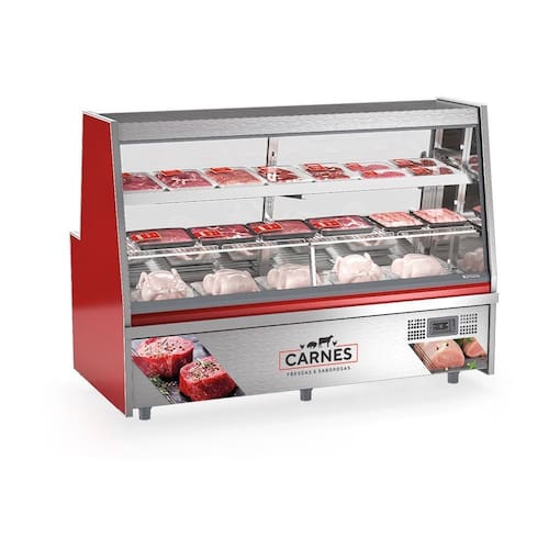 Balcão Frigorifico Avícola Linha Turino 2MT GRTA200 Gelopar. Conservação e exposição de carnes e aves (não congeladas). Refrigeração: Estática com 1 placa fria (prateleira) e serpentina de cobre. Temperatura: 0 a +7C. Degelo: Manual. Controlador eletrônico com indicador de temperatura. Revestimento Interno: Revestimento interno em aço inox 430. Revestimento Externo: Laterais em aço injetado, parte externa pré pintada, parte interna aço inox. Iluminação LED (interna), com interruptor. 2 níveis (1 nível placa fria e 1 aramado). Grades nas placas frias. Pés niveladores. Capacidade da placa fria / prateleira: 15kg/metro por prateleira. Vidros sujeitos a condensação da umidade do ar. Vidro frontal temperado, baixo emissivo. CAPACIDADE: 1019 L. PESO: 161kg. TEMPERATURA: 0 a +7°C. CONSUMO: 7,25 kWh/dia. DIMENSÕES EXTERNAS (CxAxL): 200x146,2x96,5cm. Equipamento certificado conforme Portaria Inmetro nº 371/2009. Balcão Frigorifico Avícola Linha Turino 2MT GRTA200 Gelopar é na Atau.