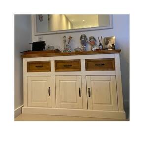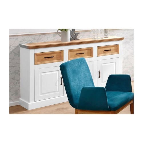 PARA FACILITAR A MONTAGEM, VOCÊ RECEBERÁ O MANUAL DE INSTRUÇÃO E KIT DE FERRAGENS. Acabamento da Gaveta: Pintura UV Acabamento da Porta: Pintura UV Acabamento da Prateleira: Pintura UV Ambiente Principal: Sala de Jantar Complexidade da Montagem: Média: pode ser montado por mais de uma pessoa e/ou necessite de maior conhecimento para montagem Cor: Branco/Natural Cor do Produto: Branco/natural Escala de Brilho: Semi-Fosco Escala de Brilho da Gaveta: Semi-Fosco Escala de Brilho da Porta: Semi-Fosco Escala de Brilho da Prateleira: Semi-Fosco Gaveta com Chave: Não Informações Complementares: Suporta até 50 kg de forma distribuída sob o tampo. Itens Inclusos: Um balcão com Manual de Montagem e Kit ferragens Linha ou Coleção: England Manual de Montagem e Instalação: https://product-hub-prd.madeiramadeira.com.br/929576/documents/7d286c5e-6904-4423-a0bd-65bd65dba5a72202197589917229473339116.pdf Material da Gaveta: Madeira Maciça Material da Porta: Madeira Maciça Material da Prateleira: Madeira Maciça Material do Puxador da Gaveta: Metal Material do Puxador da Porta: Metal Material dos Pés: Madeira Maciça Material Principal: Madeira Maciça Necessita Montagem: Sim Origem do Produto: Nacional Pés Reguláveis: Não Peso: 38 kg Peso Máximo por Gaveta: 7 kg Peso Máximo por Prateleira: 8 kg Possui Adega: Não Possui Espelho: Não Possui Nicho: Não Possui Pés: Rodapé Possui Portas: 03 Possui Rodízio: Não Recomendações de Uso, Manutenção e Limpeza: Limpar com pano úmido. Sapatas Niveladoras: Não Sistema de Montagem: Parafusos, Cavilhas e Minifix Suporta Até (kg): 50 kg Tipo de Corrediça da Gaveta: Metálica Simples Tipo de Dobradiça/Corrediça da Porta: Metálica Tipo de Madeira Maciça: Pinus Tipo de Madeira Maciça da Gaveta: Pinus Tipo de Madeira Maciça da Porta: Pinus Tipo de Madeira Maciça da Prateleira: Pinus Tipo de Madeira Maciça dos Pés: Pinus Tipo de Porta: Bater Tipo de Puxador da Gaveta: Externo Tipo de Puxador da Porta: Externo Marca: IdeaHome