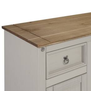 - Acabamento: Cera cor cinza lavado com veios e nós aparentes | Tampo: Cera cor marrom antique.