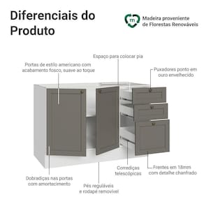 COR: Cinza | Garantia: 3 meses contra de fabricação | Dimensões - Altura: 81 cm | Dimensões - Largura: 120 cm | Dimensões - Profundidade: 52 cm | Produto: Cozinha | Marca: Madesa | Peso do Produto: 41 kg | Material: MDP | RBN: Casa/Móveis/Móveis de Cozinha | Estado de Origem: RS | Material para Filtro: MDP | Conteúdo da embalagem: 1 Balcão para Pia | Instruções/Cuidados: Utilize um pano limpo, levemente umedecido e seque em seguida a superfície. Não usar produtos químicos ou abrasivos para a limpeza. Recomendamos polir seu móvel com lustra-móveis duas a três vezes por ano. | Quantidade de gavetas: 3 | Quantidade de portas: 2 | Produto precisa de Montagem?: Sim, sugerimos a contratação do nosso de montagem (para os CEPs em que o está disponível) ou de algum experiente de sua preferência | Inclui tampo: Não | Altura do Produto com Embalagem (cm): 23,2 | Largura Produto Com Embalagem (cm): 50,4 | Comprimento Produto Com Embalagem (cm): 125,6 | Peso Produto Com Embalagem (Kg): 40,74 | Dimensões do item P x L x A (item_depth_width_height): depth#value=52;depth#unit=centimeters;height#value=81;height#unit=centimeters;width#value=120;width#unit=centimeters | Nome do Simples no Fornecedor: Balcão de Pia 120 cm 2 Portas 3 Gavetas (Sem Tampo) Branco/Cinza Vik Madesa | Fabricante: Madesa | Tipo de móveis de cozinha: Balcão | Linha: Vik | Materiais do corpo: MDP | Materiais das portas: MDP | Quantidade de caixas de embalagem: 4 | Bullet Point 0: Dimensões: 81 cm altura x 120 cm largura x 52 cm profundidade | Bullet Point 1: Inspiração no estilo americano, frentes com acabamento chanfrado e textura fosca suave ao toque | Bullet Point 2: Puxadores ponto em ouro envelhecido, portas com fechamento suave e gavetas que abrem totalmente | Bullet Point 3: A combinação perfeita entre design clássico e elementos modernos | É Frágil: Não | Quantidade de Itens: 1 | Certificação de teste externa: Sim | Modelo: G24124F8VK | Precisa de baterias ou pilhas: Não | da peça: G24124F8VK | Componetes Incluidos: Portas | Preço sugerido sem impostos: | Peso do Item: ;unit=kilograms | Descrição do Tamanho: 81 cm x 120 cm x 52 cm | Inclui manual de montagem: Sim Cor: Branco/Cinza