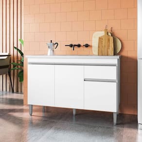 Balcão De Pia 120 Cm Talita 3 Portas 1 Gaveta Branco Balcão de Pia 120 cm Talita 3 Portas 1 Gaveta Branco - Balcão de Pia para Cozinha 3 Portas e 1 Gaveta