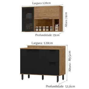 Balcão = Altura: 89,5CM|Comprimento: 120CM | Profundidade: 51,6CMAéreo = Altura: 74CM|Comprimento: 120CM | Profundidade: 29CMTampo = Altura: 22MM|Comprimento: 120CM | Profundidade: 51,6CM