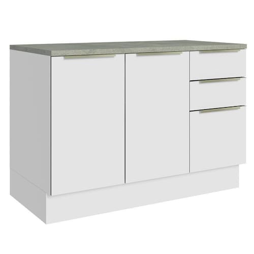 Balcão De Pia 120Cm 2PTS 3GVT Branco Veludo Lux Madesa