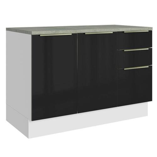 Balcão De Pia 120Cm 2PTS3GVT Branco/Preto Lux Madesa
