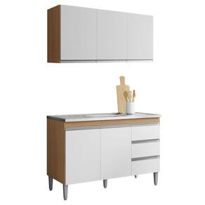Balcão de Pia 120cm e Armário Aéreo Andreia Amêndoa Branco - AJL