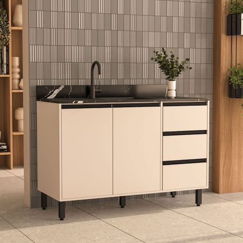 Balcao de Pia 2 Portas 3 Gavetas sem Tampo Koya Politorno Moveis O Balcao de Cozinha 2 Portas e 3 Gavetas Koya Creme, da Politorno Moveis, e a combinacao perfeita de elegancia, funcionalidade e amplo espaco de armazenamento. Suas 3 gavetas com corredicas telescopicas garantem um deslizamento suave e resistente, enquanto as 2 portas proporcionam ainda mais espaco interno. O acabamento em pintura UV confere mais durabilidade, protecao e facil limpeza. Ideal para quem busca um movel funcional e estiloso para compor a cozinha!