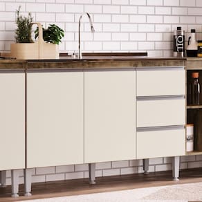 O Balcão de Pia Athena é um produto com excelente qualidade, produzido em MDP de fácil montagem, portas fixadas com dobradiças metálicas, gavetas com corrediças metálicas e puxadores em alumínio. Facilitando a organização dos seus utensílios em geral, possui também pés com regulagem de altura deixando assim sua casa com um ambiente mais moderno e aconchegante. Suporta Granito: Sim Acabamento da Prateleira: Verniz Escala de Brilho da Prateleira: Semi-Brilho Acabamento da Gaveta: Verniz Escala de Brilho da Gaveta: Semi-Brilho Material do Puxador da Gaveta: Alumínio Acabamento da Porta: Verniz Escala de Brilho da Porta: Semi-Brilho Material do Puxador da Porta: Alumínio Acabamento: Acetinado Acabamento dos Pés: Polipropileno Acompanha Tampo: Não Altura dos Pés: 17 cm Ambiente Principal: Cozinha Balcão Acompanha Pia: Não Complexidade da Montagem: Média: pode ser montado por mais de uma pessoa e/ou necessite de maior conhecimento para montagem Cor: Itaúba/Off White Cor do Pés: Cinza Cor do Produto: Itaúba/Off White Cor Interna: Itaúba Escala de Brilho: Acetinado Gaveta com Chave: Não Itens Inclusos: 1 Balcão, 1 kit ferragem e manual de montagem Linha ou Coleção: Athena Manual de Montagem e Instalação: https://cdn2.madeiramadeira.com.br/atributo/irm-moveis/916580-cz-6051-balcao-pia-athena-26-06-18.pdf Material da Gaveta: MDP Material da Porta: MDP Material da Prateleira: MDP Material dos Pés: Polipropileno Necessita Montagem: Sim Origem do Produto: Nacional Pés Reguláveis: Sim Peso: 32 kg Peso Máximo por Gaveta: 3 kg Peso Máximo por Prateleira: 5 kg Possui Pés: 05 Possui Portas: 02 Possui recorte para Cooktop: Não Recomendações de Uso, Manutenção e Limpeza: Para limpeza utilize pano macio levemente umedecido em água seguido de pano seco. Sapatas Niveladoras: Não Sistema de Montagem: Parafusos, cavilhas e cantoneiras Suporta Até (kg): 25 kg Tipo de Corrediça da Gaveta: Metálica Simples Tipo de Dobradiça/Corrediça da Porta: Metálica Tipo de Porta: Bater Tipo de Puxador da Gaveta: Externo Tipo de Puxador da Porta: Externo