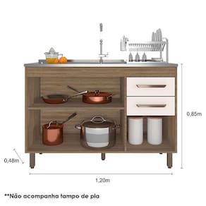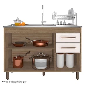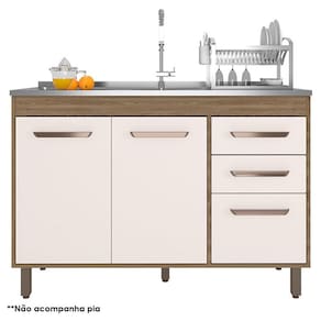 Balcão de Pia 3 Portas 2 Gavetas 120cm Flex Cavalho OAK Off White - Poliman