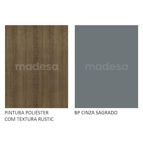 O acabamento é no padrão amadeirado Rustic, as partes internas das costas e das gavetas são brancas e as portas e frentes são cinzas. O processo é feito com a Pintura Poliéster ecológica com sete camadas de proteção, exclusiva da Madesa.
