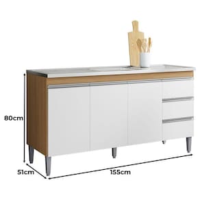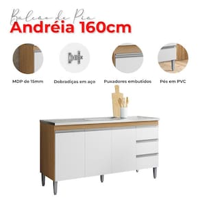 Balcão de Pia Ambiente Andréia 160cm Amêndoa Branco - AJL